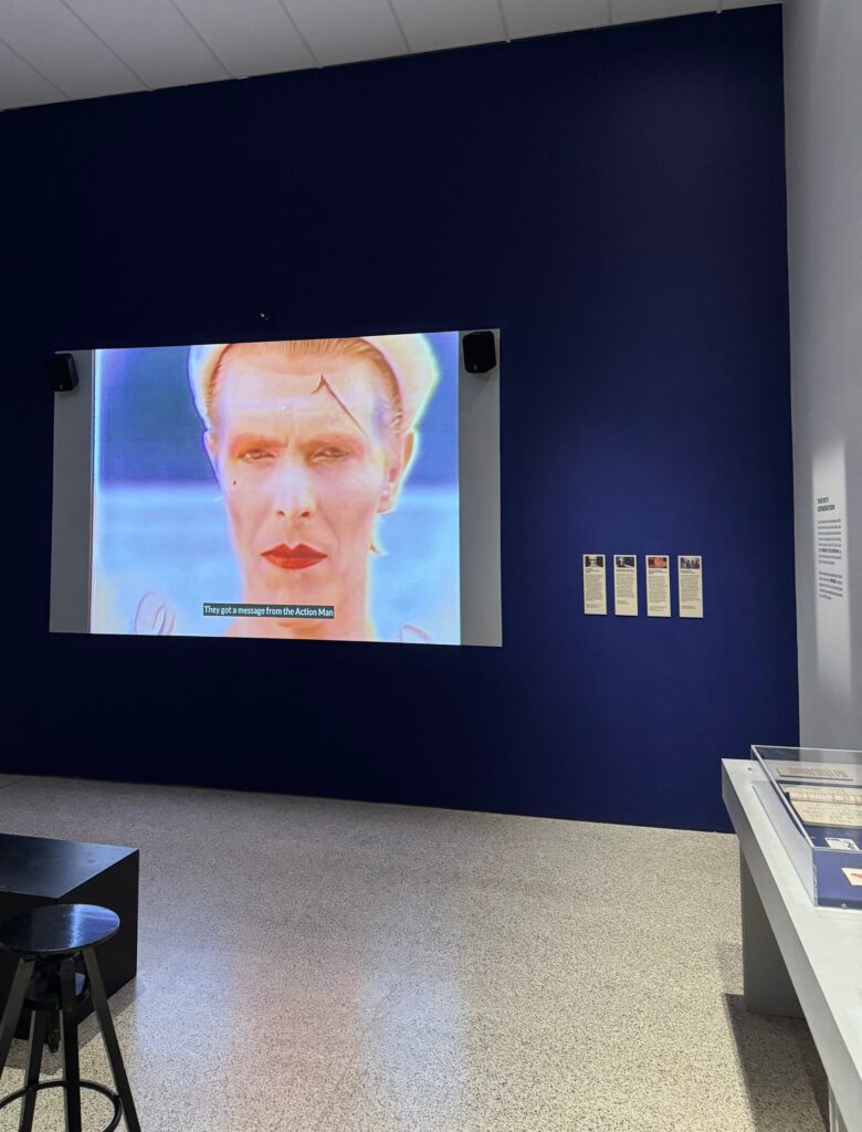 Bowie rekryterade som sagt flera Blitz-kids direkt från scenen till sin musikvideo till Ashes to Ashes. Steve Strange syns tydligt i videon. På utställningen fanns några av de ikoniska plaggen från videon att beskåda på nära håll.